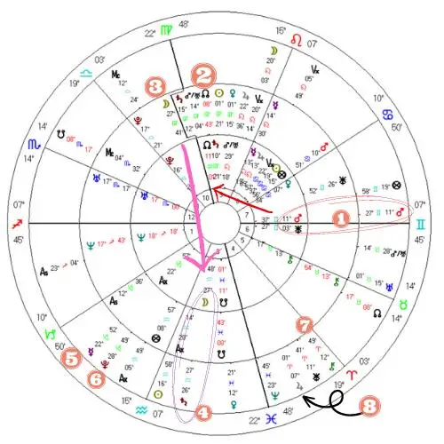 Son olarak Solar Arc haritamda bir şey var mı diye baktığımda solar arc ASC’min 8.evde bulunan Güneş’e karşıt açı kurduğunu görüyorum. Ne çok 8.ev gördük dikkat ettiniz mi?